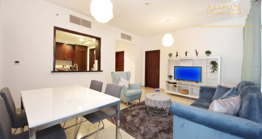The apartment is fully furnished and equipped to ensure your comfort. It consists of a living room, two separate bedrooms with double beds, semi-closed kitchen, balcony, two full bathrooms and a powder room. Free internet WiFi and TV is available. Swimming pool and gym is available in the building along with other spa and free time facilities to enhance your stay.