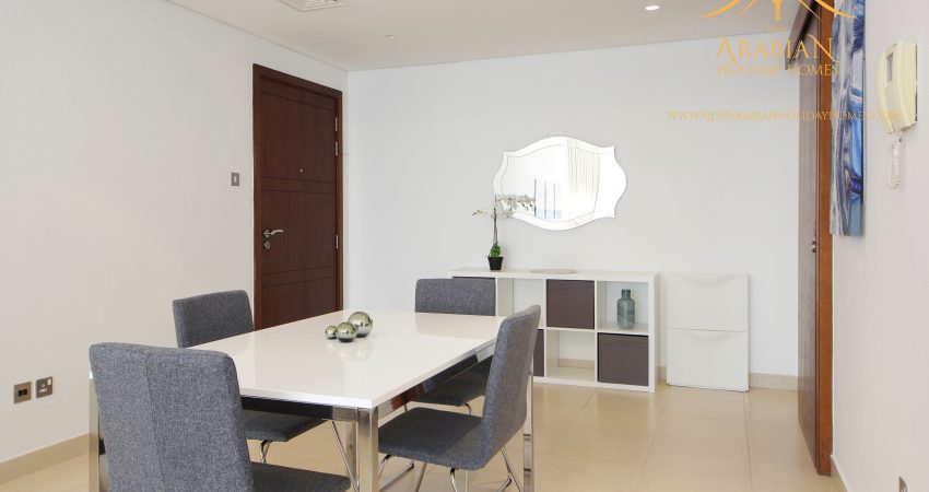 The apartment is fully furnished in a modern style and equipped to ensure your comfort. It consists of a large living room with dining area, one bedroom with king size bed, closed kitchen, a huge balcony and one full bathroom. Free internet WiFi and TV is available. Swimming pool and gym is available in the building along with other spa and free time facilities to enhance your stay. The apartment is at a very high floor and offers panoramic views of the surrounding.