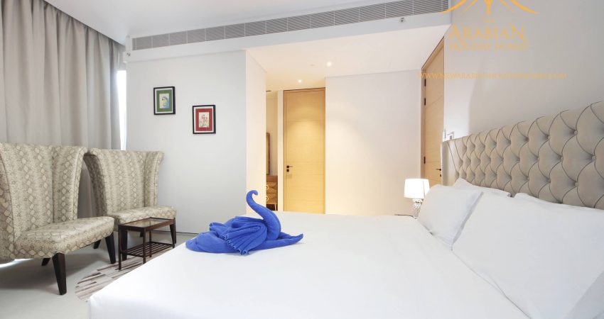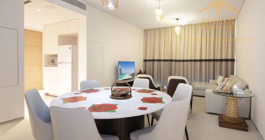 The apartment is fully furnished and equipped to ensure your comfort. It consists of a large living area, three separate bedrooms, open kitchen, two balconies with amazing views, three full bathrooms and a powder room. There is also an additional maid’s room with own bathroom. Free internet WiFi and TV is available. Swimming pool, beach and gym is available next to the building along with other premium facilities to enhance your stay.