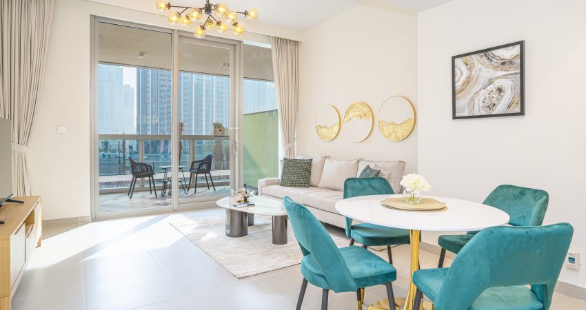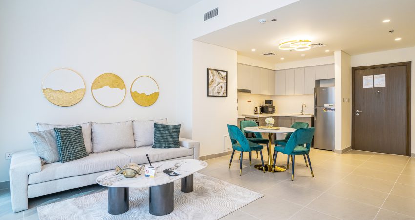– Fully furnished apartment with elegant furniture and top-notch kitchen appliances for a luxurious lifestyle.