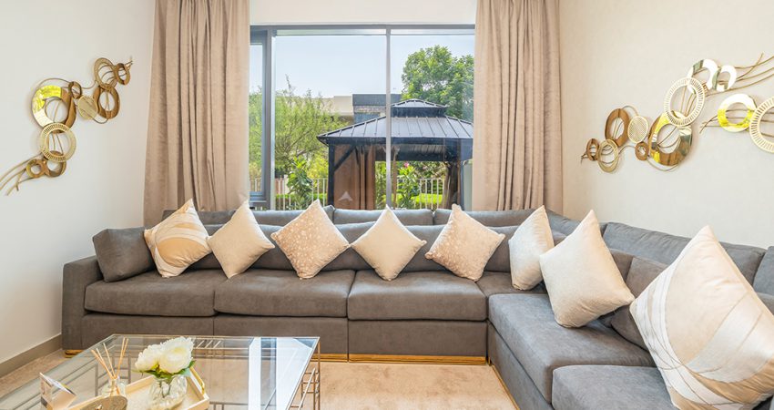 Located steps from a championship golf course and minutes from Downtown Dubai, this family-friendly villa combines serenity and accessibility.