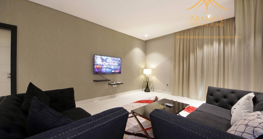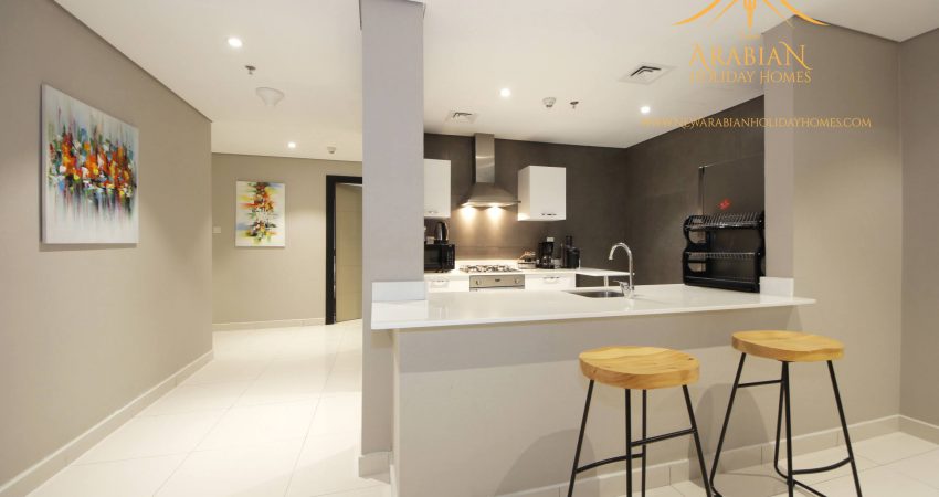 The apartment is fully furnished and equipped to ensure your comfort. It consists of an extra spacious living room, two separate bedrooms, maid’s room with own bathroom, fully equipped kitchen, balcony, 2 full bathrooms and a powder room. Free internet WiFi and TV is available. Swimming pool and gym is available in the building along with other amenities and free time facilities to enhance your stay.