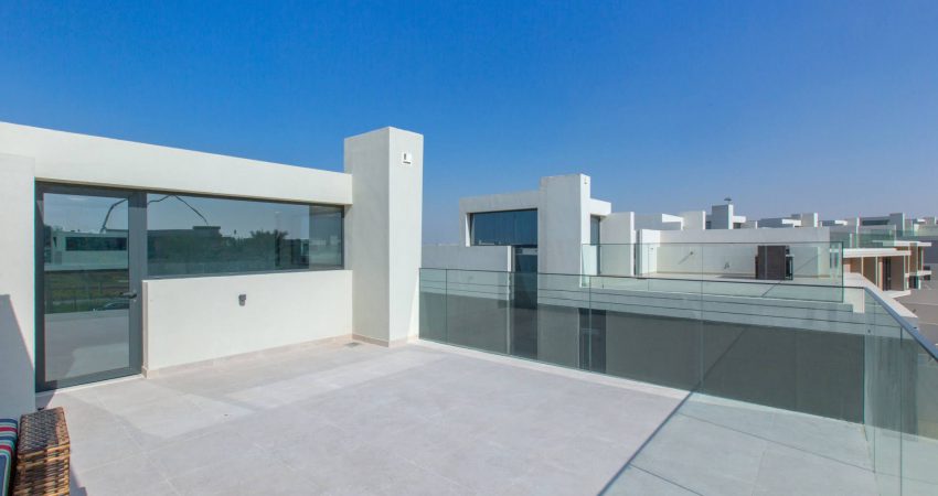 This modern home is fully furnished and equipped to ensure the comfort of your stay. In the ground floor, you will find large living and dining area, open-plan kitchen, powder room and a maid’s room with it’s own bathroom. In the first floor are three bedrooms, the master bedroom has walk-in closet, own balcony and a spacious bathroom. The other two bedrooms share one bathroom in the corridor. The third bedroom has two single beds. The rooftop offers a spacious area with a gazebo with a comfortable sofa set. The villa has a landscaped garden with a lovely dining set and a swing.