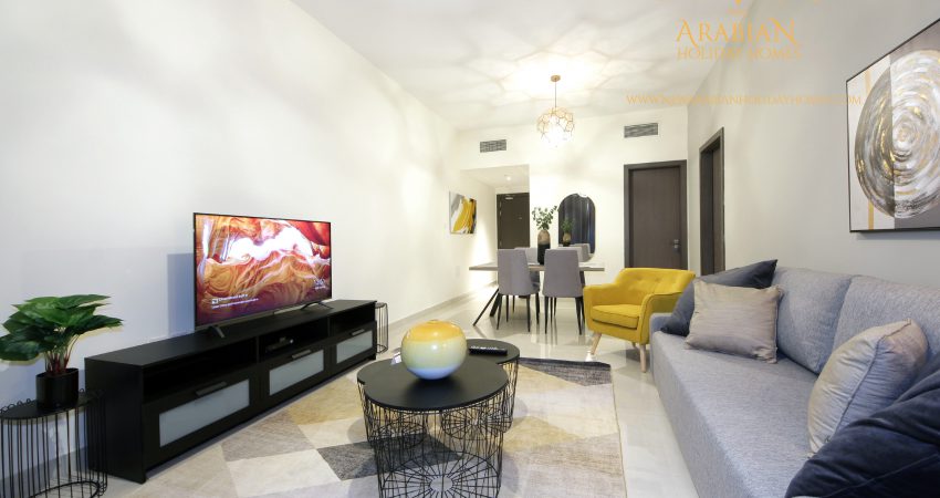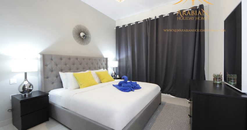 The apartment is fully furnished and equipped to ensure your comfort. It consists of a spacious living room, closed kitchen, a balcony, large bedroom one full bathroom and powder room. Free internet WiFi and TV is available. Swimming pool and gym is available at the building.